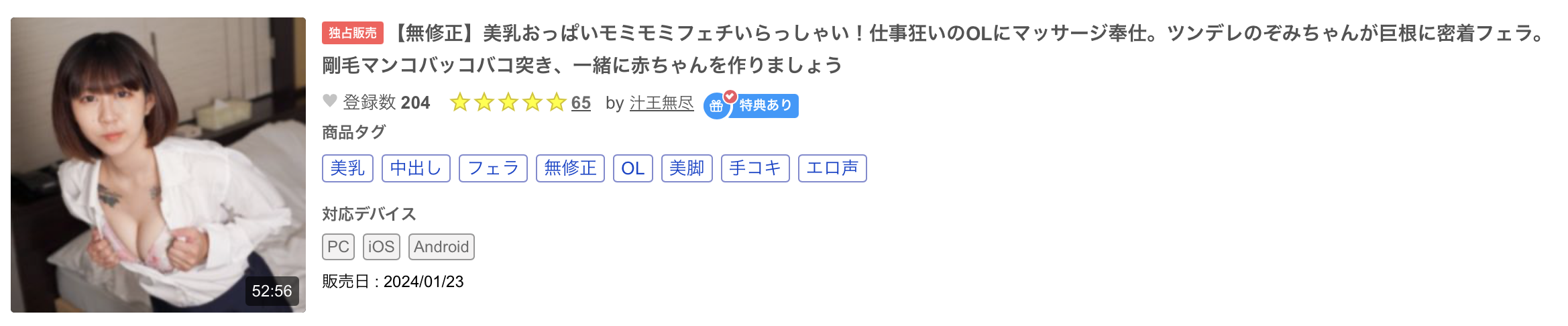一样的短发,一样的刺青,这人和无码卖家熟的不得了:FC2-PPV-4241265的美乳OL是她,一口气连三支作品的「りんちゃん21歳」系列也是她演出(FC2- PPV-3995986,4017247,4053498),然后那位在面包上班的21岁短发美女仍然是她(FC2-PPV-3986236、3986279、4008137)⋯上述列出来只是她在FC2平台差不多一半的作品,这样子你就明白从去年年底到上个月都有无码作品问世的她非常习惯在马儿下的无码界演出,说她乐此不疲也不为过〜